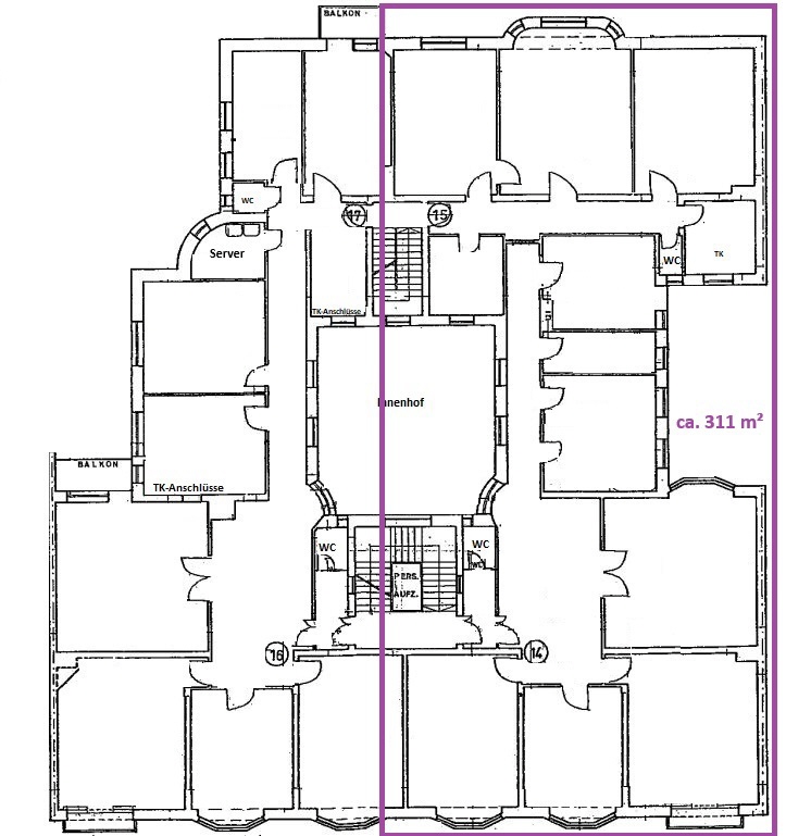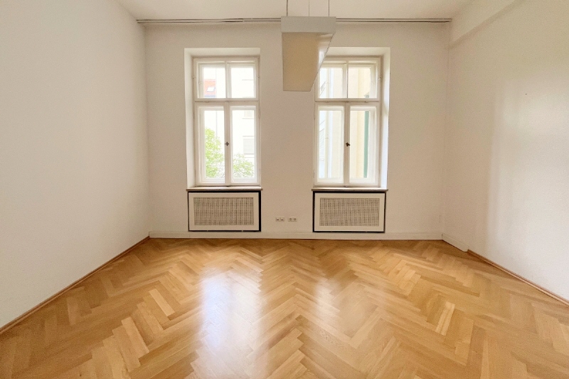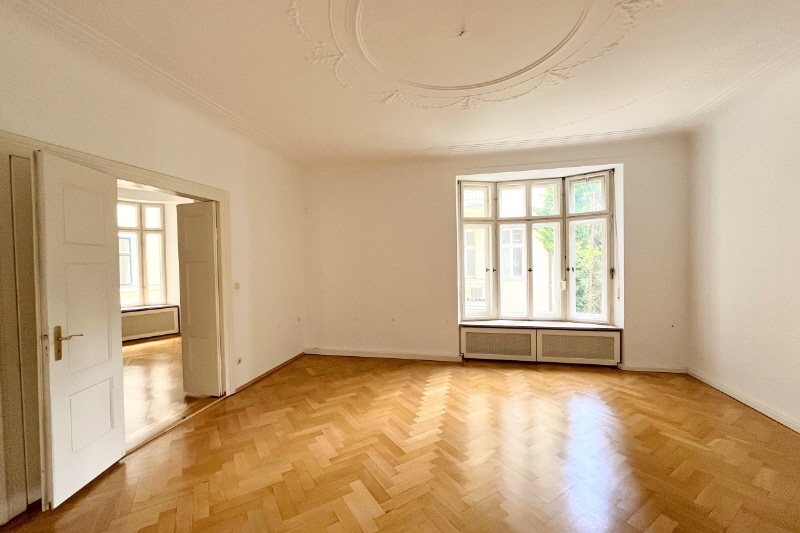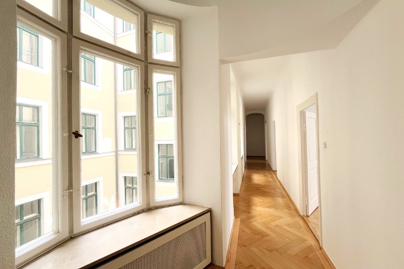 Im Rahmen der aktuellen Modernisierung werden historische Details sorgfältig mit zeitgemäßem Komfort kombiniert: Die Sanitärbereiche werden komplett erneuert und der Parkettboden wird aufgearbeitet, um den ursprünglichen Charakter zu bewahren. Die Fläche präsentiert sich damit als modernisierte Büroeinheit mit besonderem architektonischem Flair.