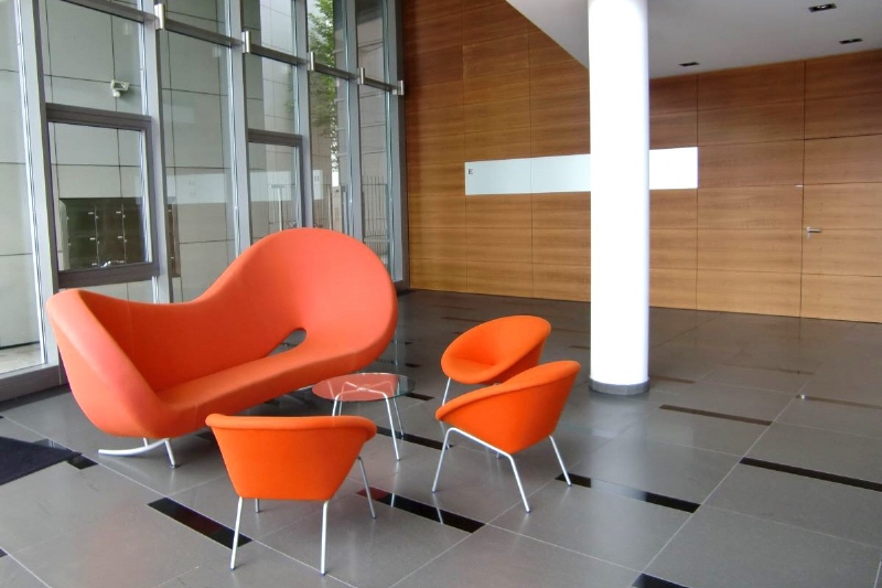 Das elegante Geschäftsgebäude mit Glas-Stahl-Fassade wurde im Jahr 2002 erbaut. Es erschließt sich über 4 repräsentative Foyers, die zum Teil über die üppig begrünten Innenhöfe begehbar sind. Die vier unterschiedlich geformten Gebäudeteile sind über Glasbrücken miteinander verbunden und bieten somit eine großzügige, transparente Architektur. Die Büros sind durch bodentiefe Fensterfronten flexibel teilbar und lassen hinsichtlich der Ausstattung keine Wünsche offen.