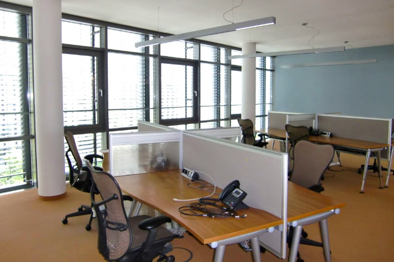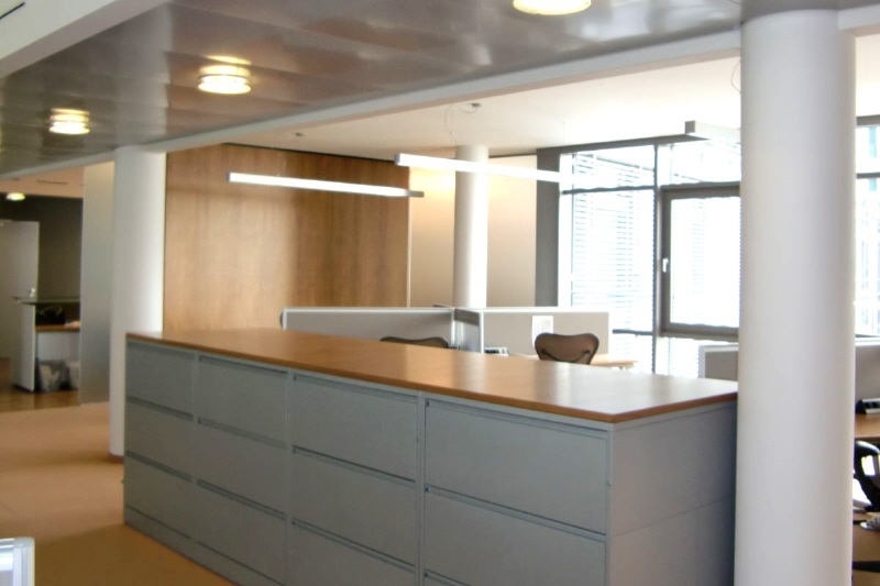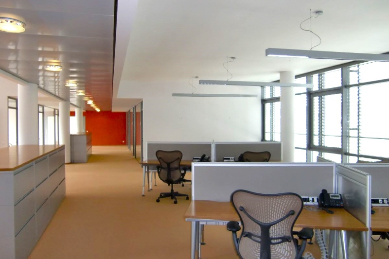 • Pendelleuchten in den Büros, Spots im Flurbereich