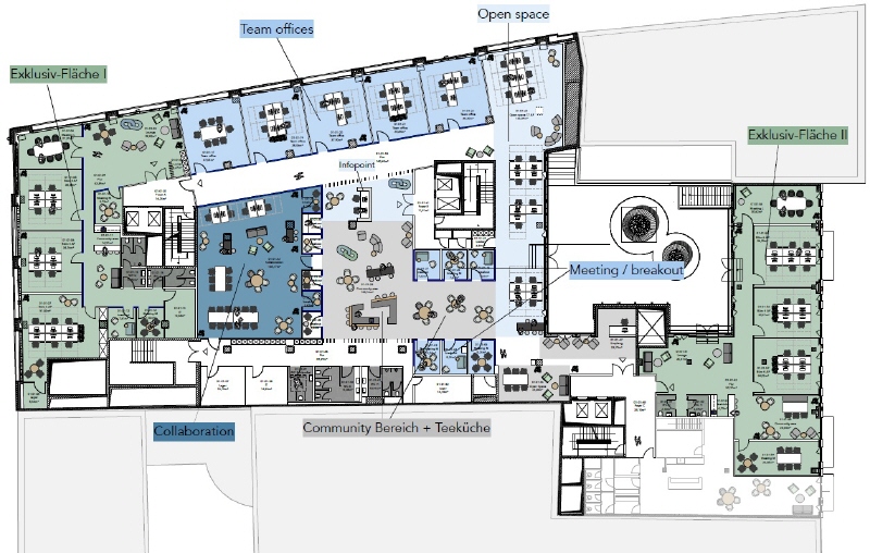 - Hohraumboden mit Bodentanks für mieterseitige EDV-Verkabelung