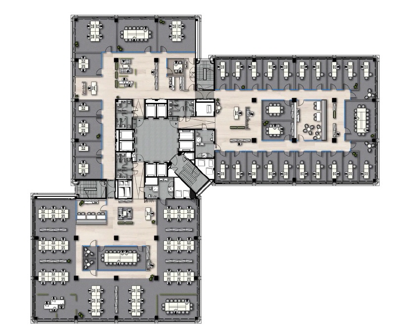 - Brüstungskonvektoren (Heizen & Kühlen) an zwei Fassadenseiten