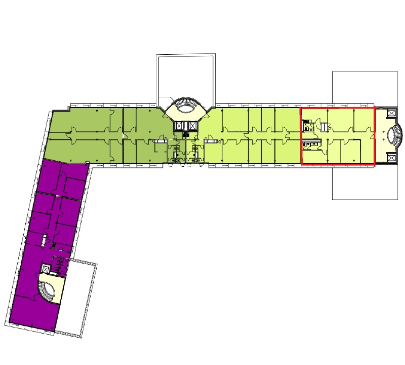 Dieses markante Geschäftshaus besticht durch die aufwendige Glasfassade und das unverwechselbare, sehr repräsentative Haupttreppenhaus. Die zu vermietende Einheit befindet sich ruhig gelegen im 4. Obergeschoss im rückwärtigen Teil des Gebäudes. Die Fläche ist in Büros unterschiedlicher Größe aufgeteilt und kann in Absprache mit dem neuen Mieter umgestaltet werden.