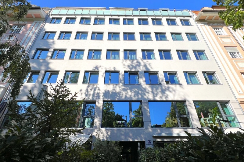 Das attraktive Geschäftshaus liegt eingerahmt von wunderschönen Altbauten in der Nähe des Rotkreuzplatzes. Über ein mit Naturstein ausgestattetes Treppenhaus gelangt man mit dem Lift in das chice Büro im 5. Obergeschoss, von dem man einen schönen Ausblick hat. Die Bürofläche wurde hochwertig modernisiert und bietet einen effizient gestalteten Grundriss.