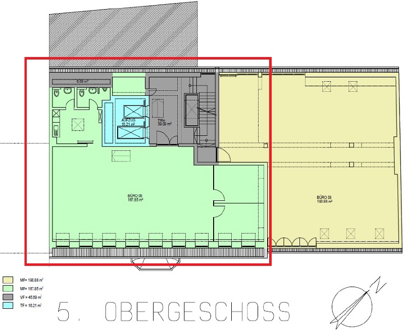 - ca. 65,36 m² Archivflächen (à € 8,00 /m² zzgl. gesetzl Mwst.) können angemietet werden