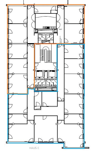 - im Kellergeschoss stehen ca. 315 m² Lagerfläche zur Verfügung (à € 9,00 zzgl. gesetzl. MwSt.)