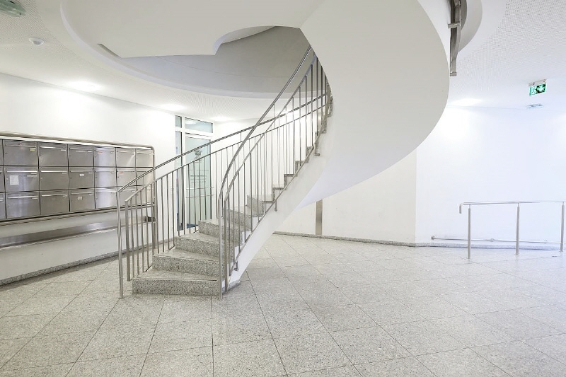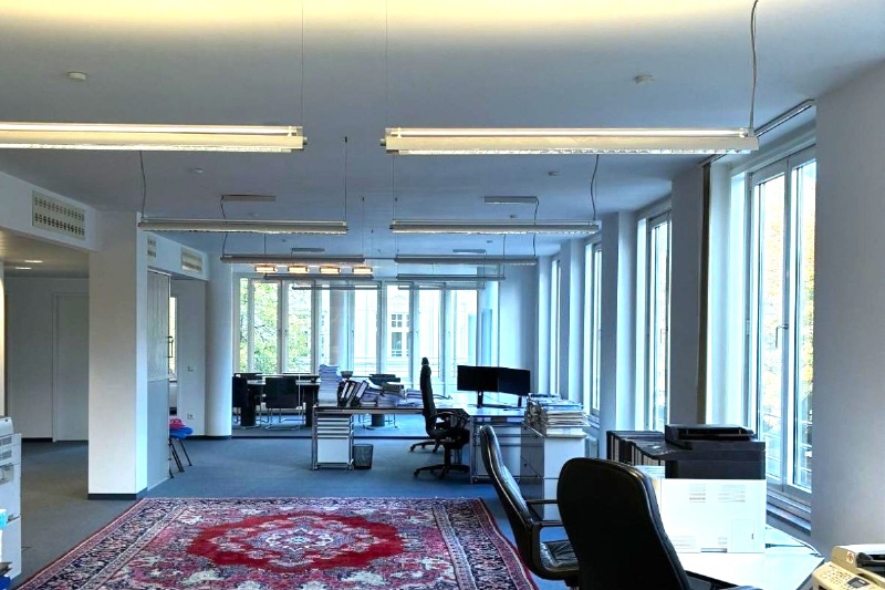 - Pendelleuchten in den Büros, Deckenspots im Flur