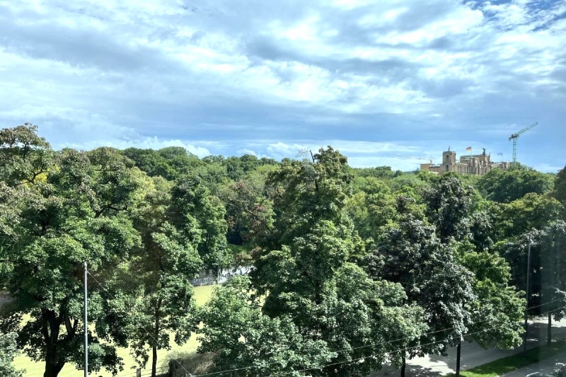 - 2 Stellplätze können in der hauseigenen Tiefgarage (à € 250,00 zzgl. gesetzl. MwSt.) angemietet werden
