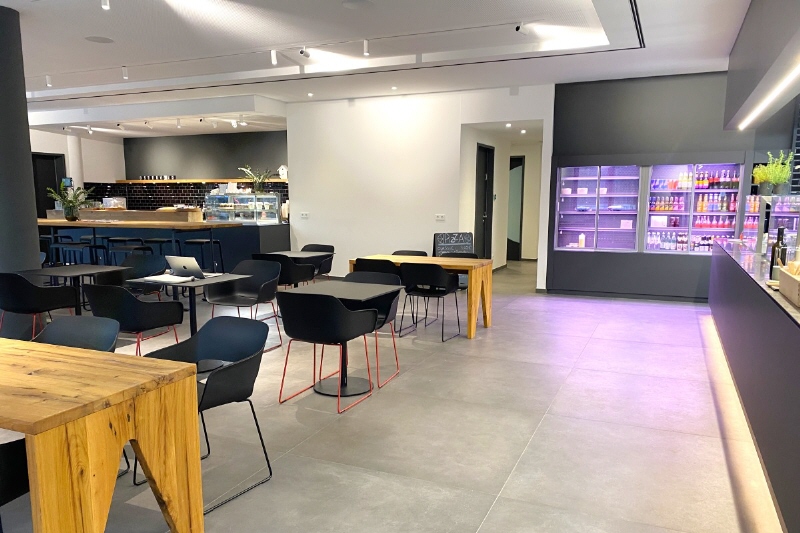 • einige Restaurants und Cafés erreicht man in ca. 10 Minuten zu Fuß, eine neue Kantine eröffnet in Kürze auf dem Gelände