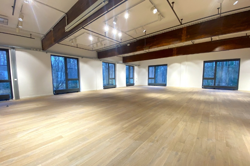 Das ehemalige Fabrikgelände von Lodenfrey hat sich heute zu einem bekannten Standort für kreative und innovative Unternehmen entwickelt. Das Ambiente der alten Fabrikgebäude in idyllischer Lage direkt am Englischen Garten ist wie geschaffen für kreatives Arbeiten. Umgeben von üppigen Grünflächen und kleinen Bächen entsteht eine äußerst anregende Atmosphäre. Auf dem Gelände befindet sich außerdem auch ein großer Pool, der ein beliebter Treffpunkt im Sommer ist. Man trifft sich hier zur Mittagspause oder zwischendurch, aber auch für interne Meetings im Freien. Die freie Fläche ist in unterschiedlich große Räume aufgeteilt. Ein tolles Plus ist die umlaufende Dachterrasse mit 213 m².