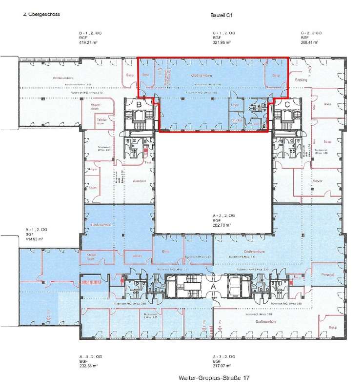 • Archivflächen unterschiedlicher Größe im Keller (à € 8,50/m² zzgl. gesetzl. MwSt.)