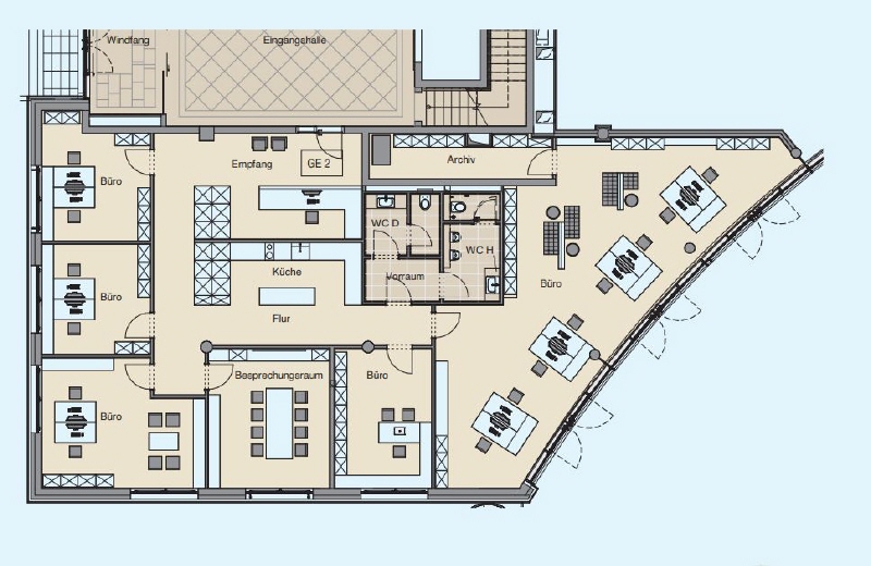 Die hochwertigen Flächen befinden sich in einem in 2020 errichteten Neubau. Über ein sehr repräsentatives Foyer mit 2 Lifts erreicht man die exklusiv ausgestatteten Einheiten, die sich sowohl als Showroom aber auch für eine Büronutzung anbieten.