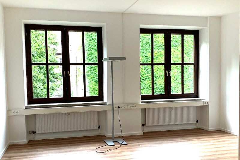 Dieser Standort lässt keine Wünsche offen: das schöne Büro- und Wohnensemble liegt abgewandt zur Straßenseite und öffnet sich zum attraktiv begrünten Innenhof mit individuellen Gebäuden. Alter Baumbestand und vielfältige Bepflanzung laden zum Verweilen ein und lassen auf den ersten Blick die Innenstadtlage nicht erahnen. Das Büro im 1. Obergeschoss wurde vor einiger Zeit komplett renoviert und ist zum ruhigen Innenhof ausgerichtet.