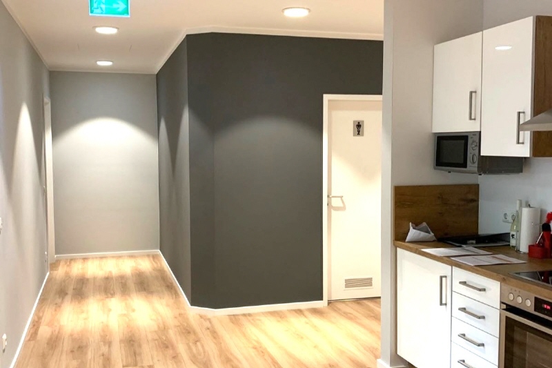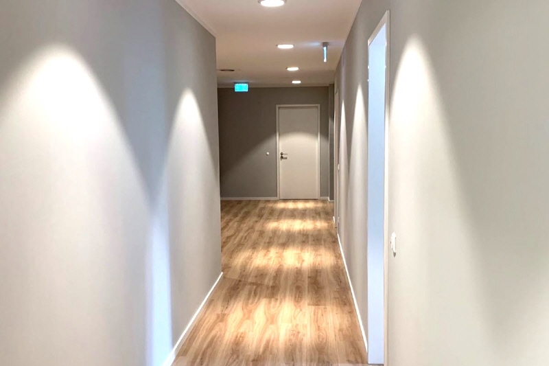 - arbeitsplatzgerechte Stehleuchten, Spots im Flur