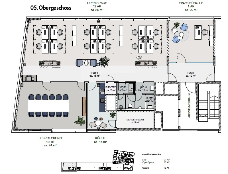 - diverse Lagerflächen im Untergeschoss anmietbar (à EUR 10,00/m² zzgl. EUR 3,50/m² Nebenkosten zzgl. gesetzl. MwSt.)