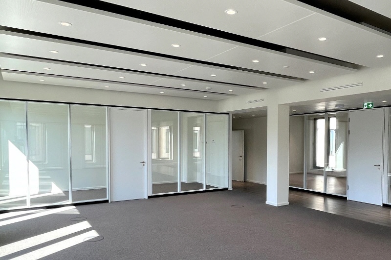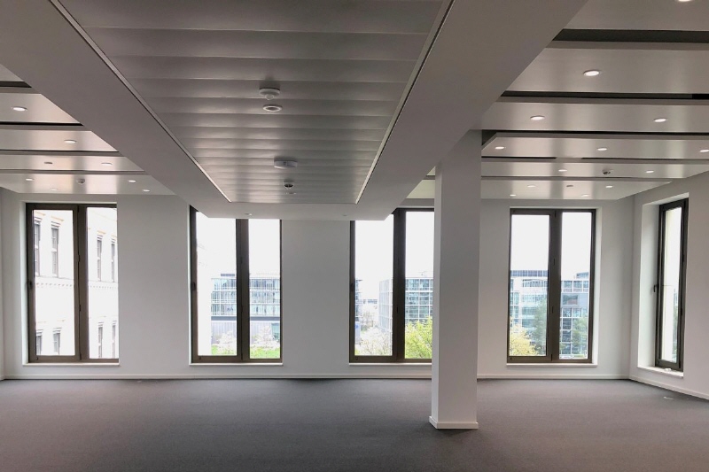 - mechanische Luftwechselrate 2-fach in Büroräumen, 5-fach in Besprechungsräumen