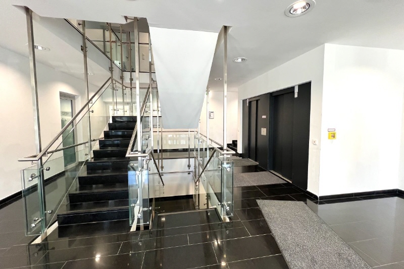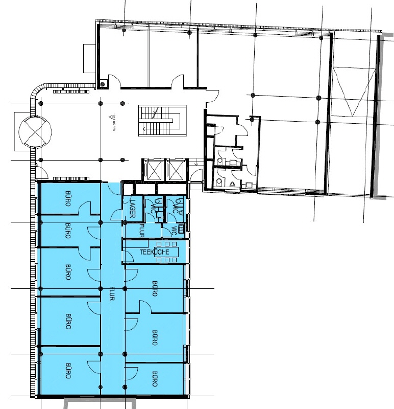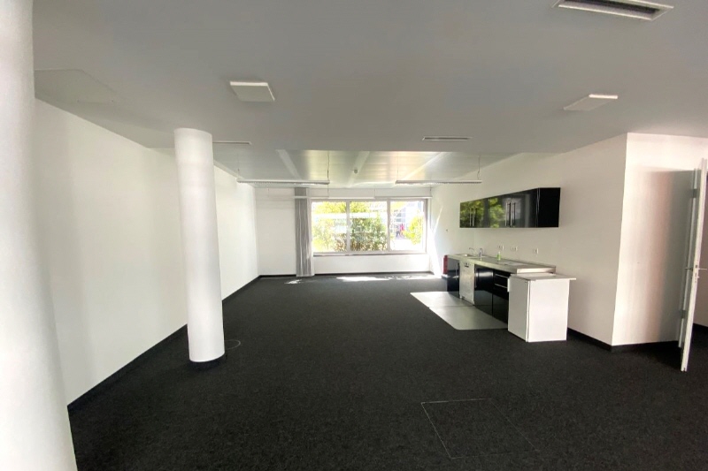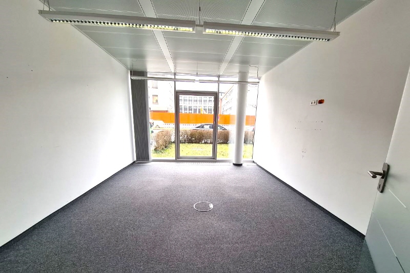 Die schöne Erdgeschossfläche liegt in einem schicken Neubau mit stylischer Glasfassade. Durch die bodentiefen Fenster kann man hier wirklich von einem lichdurchfluteten Büro sprechen. Die Fläche kann in Absprache mit dem neuen Mieter ausgebaut werden, die Raumaufteilung ist absolut flexibel.