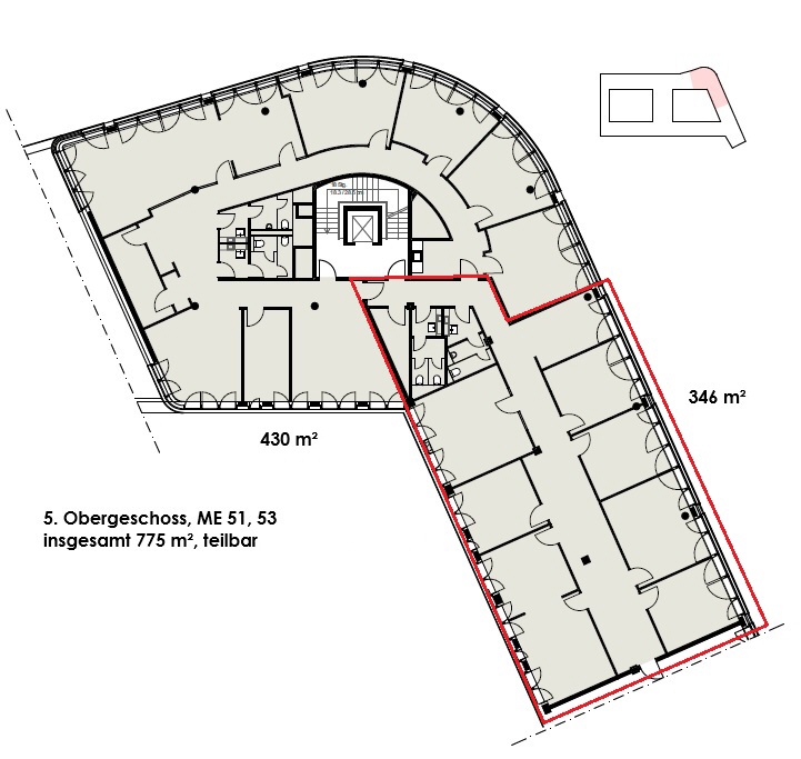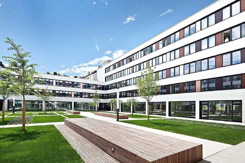 Das Gebäude ist nach der Komplettsanierung vor einigen Jahren nicht mehr wiederzuerkennen: der ehemals schlichte, kubische Baukörper ist einer geschwungenen Fassade gewichen, in den begrünten Innenhöfen wurden Ruhezonen erschaffen und die Büros im Inneren stehen modernem Neubaustandard in Nichts nach. Bei der Revitalisierung wurde vor allem Wert auf Nachhaltigkeit gelegt. Dies spiegelt sich nicht nur bei der Verwendung natürlicher Materialien, sondern auch in der energieoptimierten Fassade wieder. Ein besonderes Plus sind die Sonnenterrassen in den oberen Stockwerken, die für alle Mieter zur Verfügung stehen.