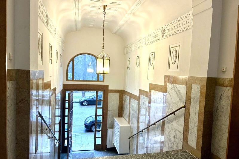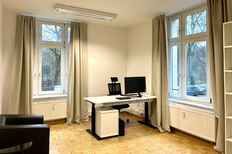 Der schöne Altbau befindet sich in direkter Isarnähe. Über einen repräsentativen Eingangsbereich mit Stuck erreicht man das Büro im Hochparterre, das in 3 Räume und einen Empfangsbereich aufgeteilt ist. Die Fläche wird frisch gestrichen sowie mit erst kürzlich abgeschliffenem und neu versiegeltem Parkett dem neuen Mieter übergeben.