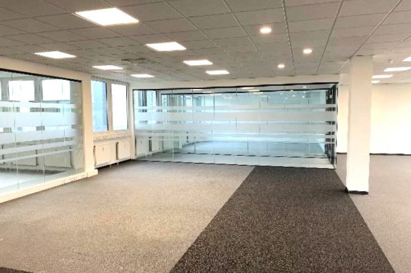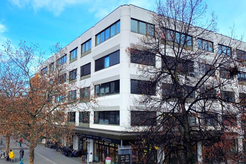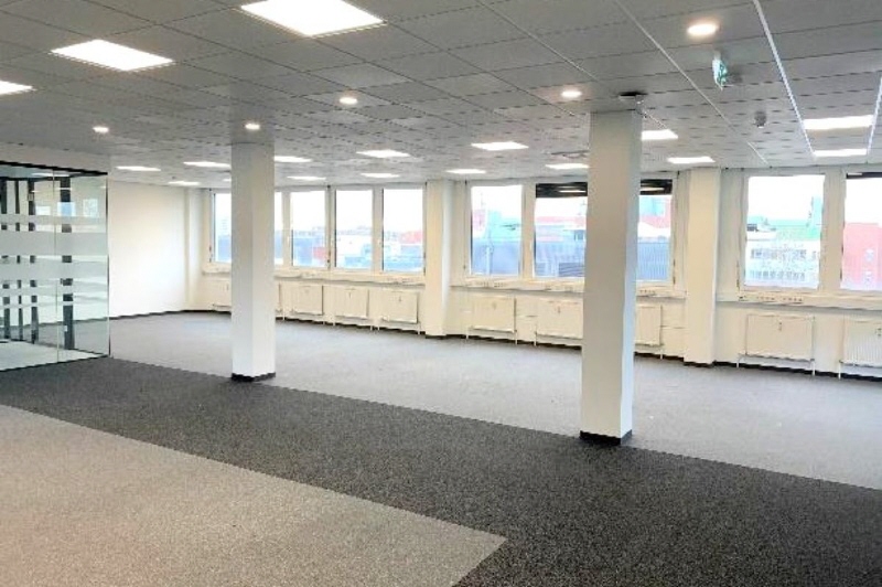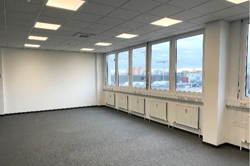 Das Gebäude aus dem Jahr 1982 wurde vor ein paar Jahren umfassend renoviert. Hierbei wurde die Fassade gestrichen, die Eingangsbereiche modernisiert und mit einem neuen Farbkonzept versehen. Die Bürofläche im 4. Obergeschoss ist offen gestaltet und mit Glaselementen ausgebaut, zudem hat man einen schönen Ausblick.