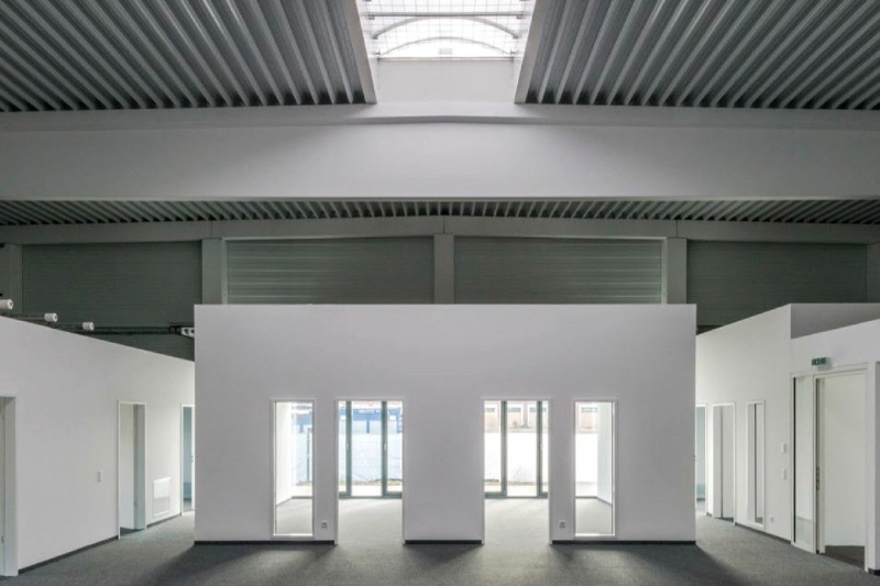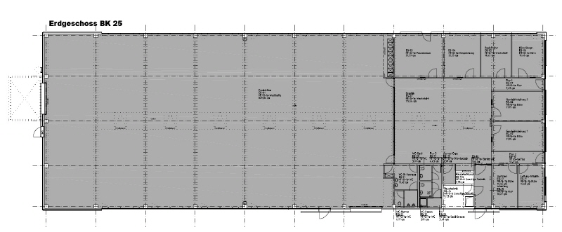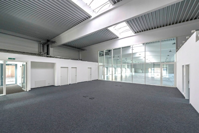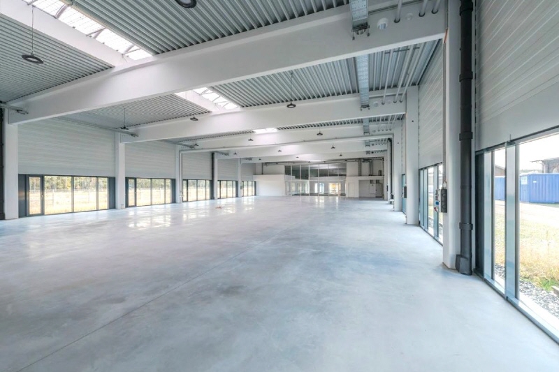 Die 2016 fertig gestellte funktionale Halle mit angrenzendem Bürobereich ist komplett ebenerdig und eignet sich für vielfältige Nutzungen aus den Bereichen Forschung & Entwicklung sowie leichte Produktion. Die Andienung erfolgt über zwei ebenerdige Hallentore, lichte Breite ca. 4,00 m x 4,00 m.