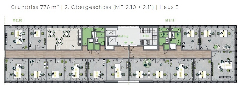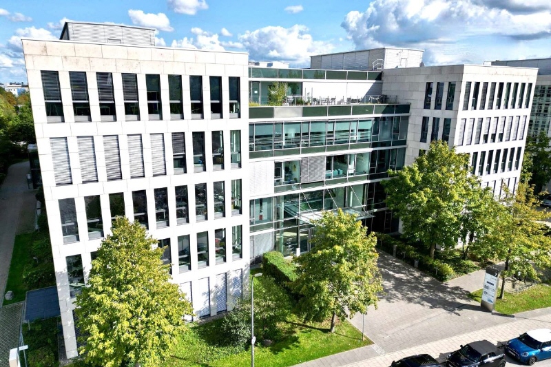 Hochwertiger, repräsentativer Büroneubau, welcher in 3 Längsbauten mit Natursteinfassade gegliedert ist. Die 3 Bauabschnitte werden durch Glasbrücken miteinander verbunden. In den Innenhöfen eröffnen sich Grünflächen, die sich für entspannte Mittagspausen anbieten. Die Büros sind flexibel gestaltbar und auf dem neusten Stand moderner Büroausstattung.