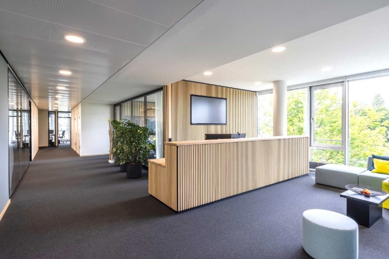 • arbeitsplatzgerechte Beleuchtung in den Büros, Spots in den Fluren