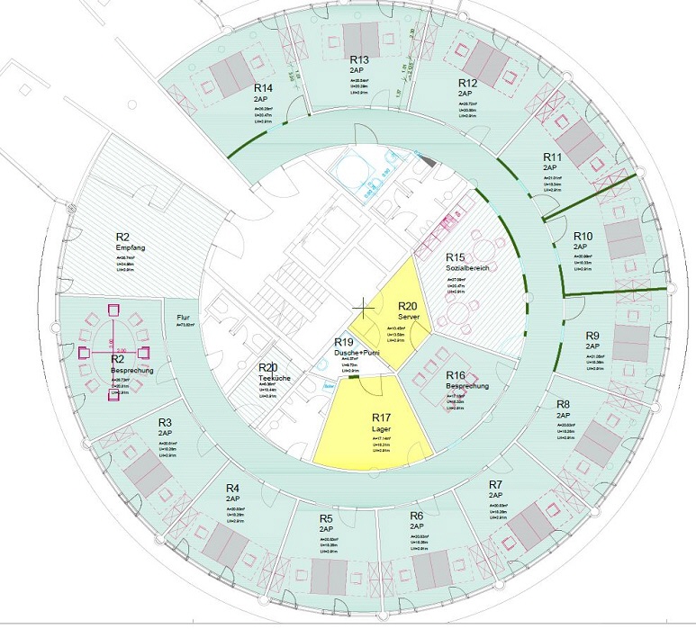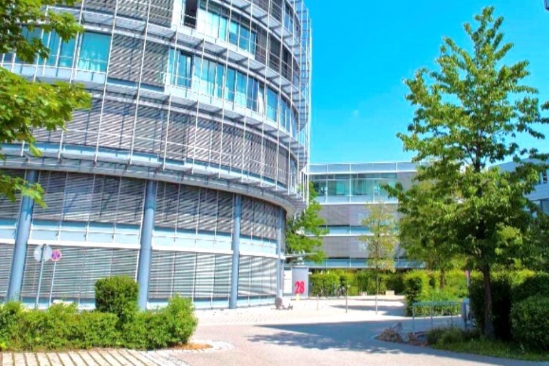 Das schicke Gebäudeensemble, bestehend aus 5 Häusern, liegt eingebetttet von viel Grün im Gewerbegebiet Aschheim-Dornach. Die 4 kubischen und ein zylindrischer Baukörper bilden ein attraktives Erscheinungsbild sowohl für Besucher als auch Mitarbeiter. Im Gebäude und in der nahen Umgebung haben sich namhafte Unternehmen niedergelassen und profitieren von der verkehrsgünstigen Lage an der Autobahn. Die Bürofläche ist hochwertig ausgebaut und in Einzel- und Doppelbüros unterteilt.