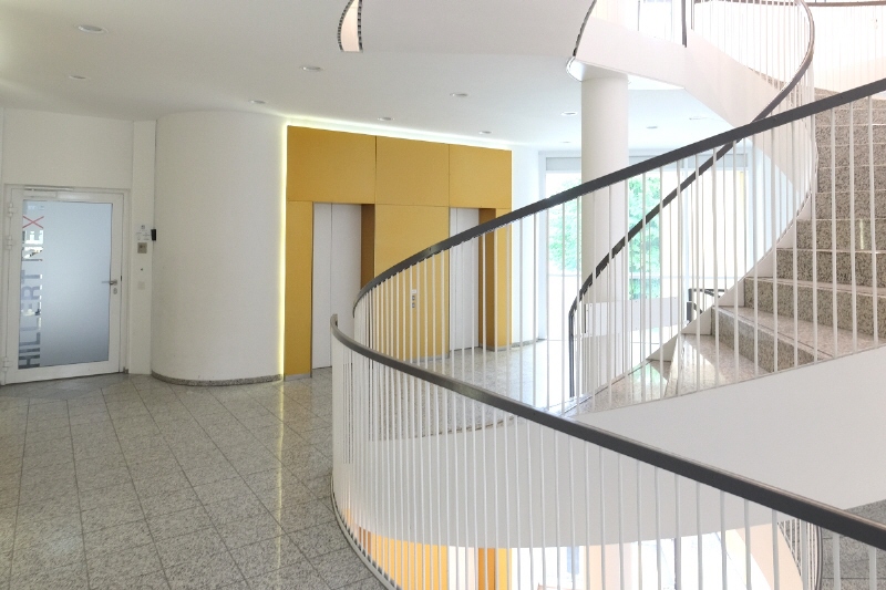 Das schicke Bürogebäude aus dem Jahr 1985 wurde 2012 im Innenbereich komplett modernisiert. Die Fassade und die gut sichtbare Lage an einer weitläufigen Kreuzung machen es zu einem echten Blickfang in Schwabing-Nord. Mit der angrenzenden A9, dem Mittleren Ring und der U-Bahn vor der Haustür ist die Anbindung sowohl Richtung Innenstadt als auch in Richtung Flughafen außergewöhnlich gut. Die Mieteinheiten mit Bürotiefen von 4,50 – 4,80 m werden im Standardaus zu einem sehr atrraktiven Mietpreis angeboten. Das Gebäude ist mit Grünflächen vor dem Haus und einem Innenhof versehen.