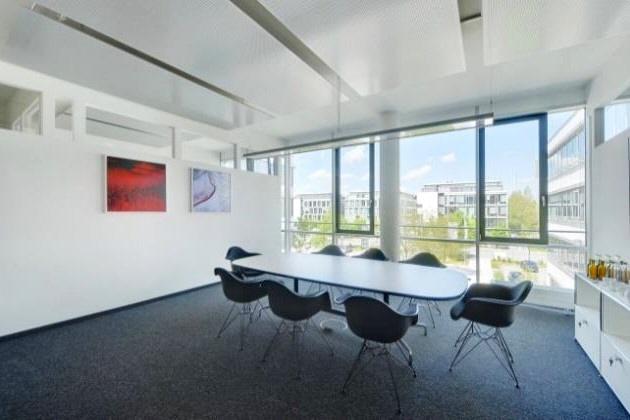 Das moderne Bürogebäude mit zeitgemäßer Glasfassade liegt verkehrsgünstig im Gewerbegebiet Feringastraße. Umgeben von attraktiv begrünten Innenhöfen erreicht man die Büros über stylische Eingangsbereiche. Von den Büros im Dachgeschoss blickt man bei gutem Wetter bis zu den Bergen. Attraktiv ist auch der niedrige Gewerbesteuerhebesatz von 330.