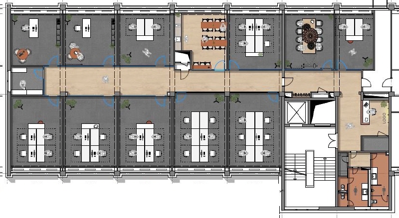 - Designboden im Flur, Teppichboden in den Büros