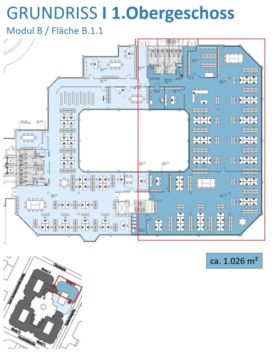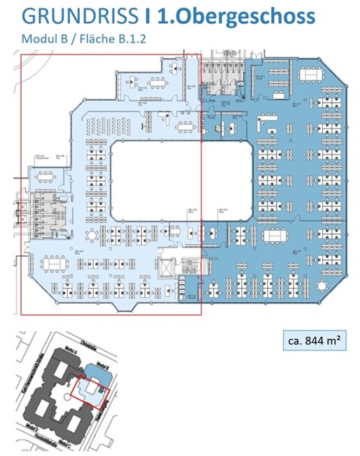 Der attraktive Bürokomplex wurde 1997 gebaut und besteht aus 4 modularen Baukörpern, die durch einen neu gestalteten Innenhof miteinander verbunden sind. Die Gebäude wurden sukzessive modernisiert. So wurden unter anderem die Zugänge und Eingangsbereiche sowie die Treppenhäuser hochwertig saniert. Die Büros bieten neben flexiblen Grundrissen und schönem Ausblick auf den grünen Innenhof viele Gestaltungsmöglichkeiten und zum Teil Terrassen für entspannte Mittagspausen.