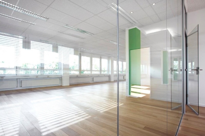 In dem modernen Bürohaus aus den 90er Jahren findet man ökonomische und variable Flächen, die sehr hochwertig und zeitgemäß ausgestattet wurden. Die Fassade des Gebäudes wurde komplett saniert und farbig in stylischem schwarz-weiß neu gestaltet. Das Büro befindet sich im 1. Obergeschoss und kann in Absprache mit dem neuen Mieter komplett renoviert und mit Eichenparkett, Glastüren und integrierten Deckenleuchten versehen werden. Der Mietpreis richtet sich nach Art und Umfang des Ausbaus.