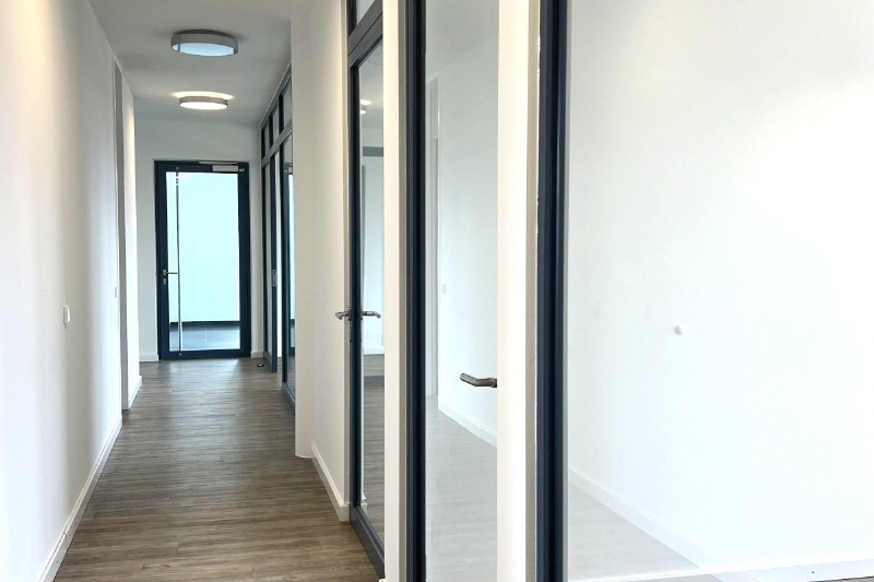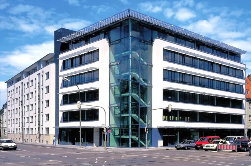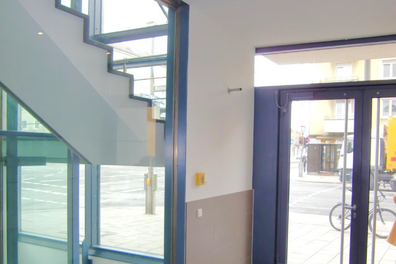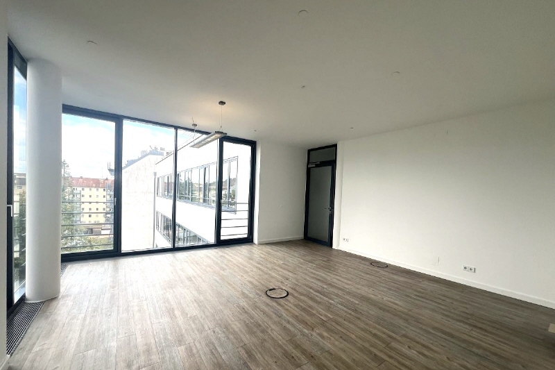 Das moderne Geschäftseckhaus befindet sich in verkehrsgünstiger Lage unweit des Harras. Über ein schick verglastes Treppenhaus gelangt man mit dem Lift in die Büros, die sehr hell und flexibel gestaltbar sind.