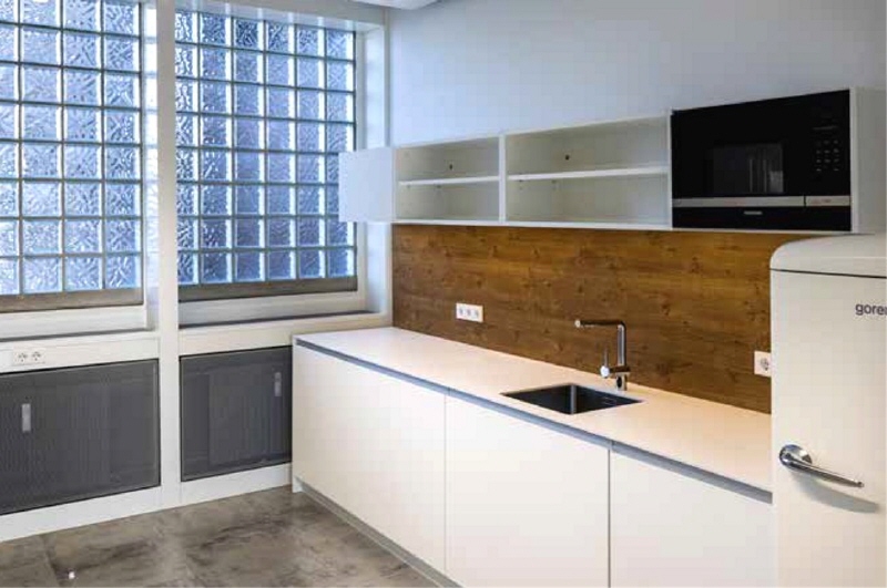 - schöner Teppichboden in den Büros, Designbodenbelag im Flur und in der Küche