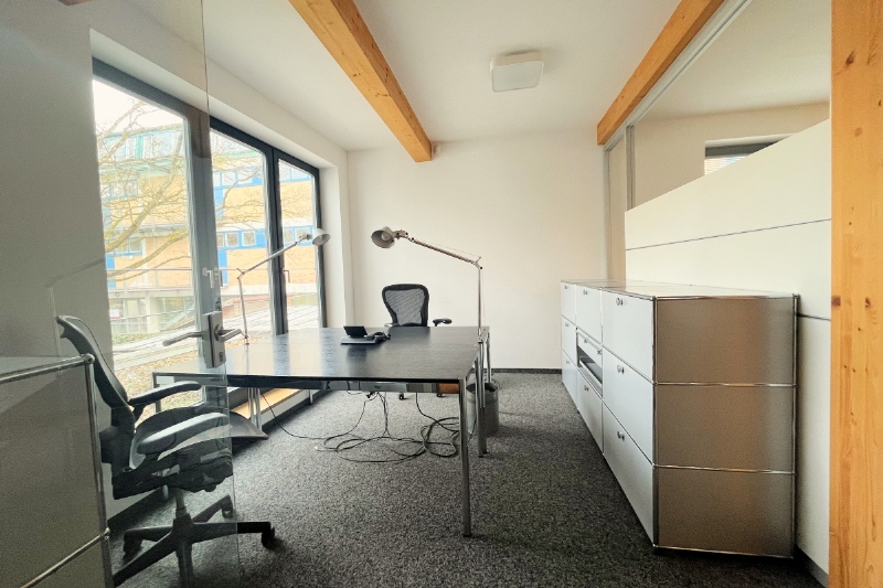 Das Holzhybridhaus ist ein echtes architektonisches Highlight im Glockenbachviertel und liegt in einem ruhigen Innenhof, der über ein automatisches Hoftor erschlossen wird. Die Fläche ist in unterschiedlich große Räume gegliedert – von Einzel- über Team- bis hin zum Großraumbüro – ergänzt durch einen Konferenzraum und eine moderne Teeküche. Großzügige Glasflächen und klare Strukturen schaffen ein zeitgemäßes Arbeitsumfeld mit rund 15 Arbeitsplätzen. Die trendige Lage am Gärtnerplatz gehört zu den gefragtesten Adressen der Stadt und verbindet urbanes Flair mit einer kreativen Nachbarschaft. Es ist sowohl ein Untermietverhältnis zu günstigeren Konditionen bis zum 31. Juli 2029 möglich als auch ein direktes, neues Hauptmietverhältnis.